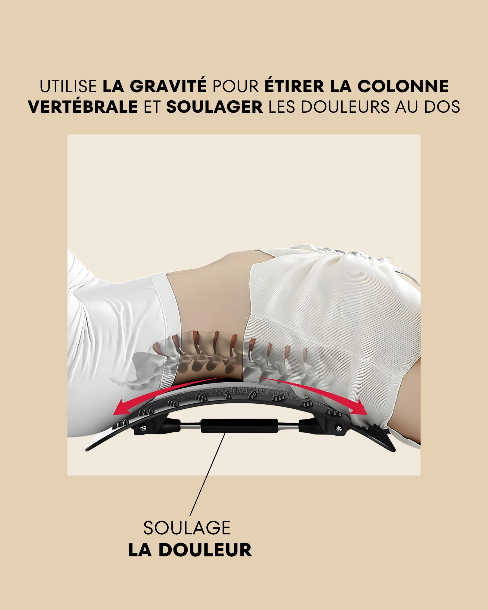 Conçue pour soulager naturellement votre dos en seulement quelques minutes par jour, elle combine étirement, massage et correction posturale, sans besoin d’électricité ni effort physique.